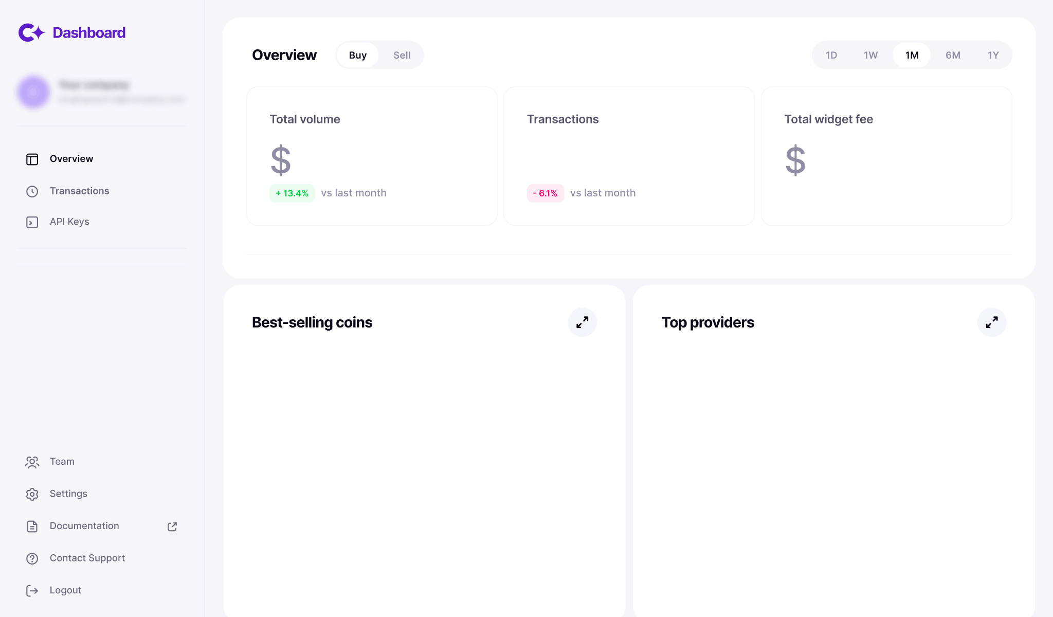 Access 15+ leading fiat and crypto providers through a single API. No need to manage multiple APIs, contracts, or ongoing maintenance.